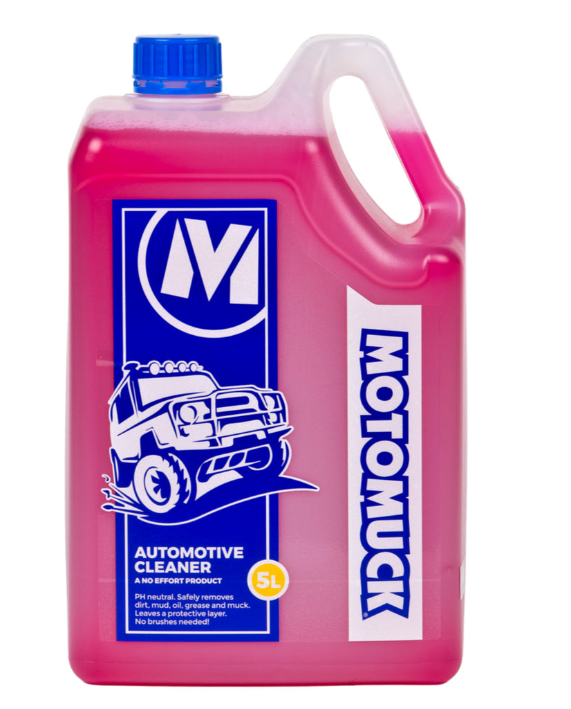 Motomuck Automotive Cleaner is our NZ Made, NO EFFORT, PH neutral cleaner specifically designed to remove heavy dirt, mud, oil, grease and muck from your vehicle whilst leaving a protective layer which aids in future cleaning and enhancing the overall surface finish.