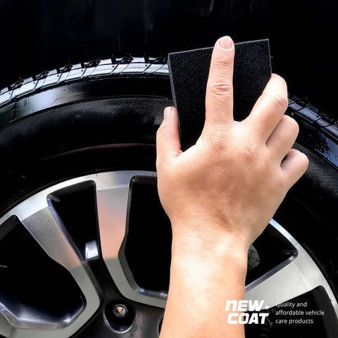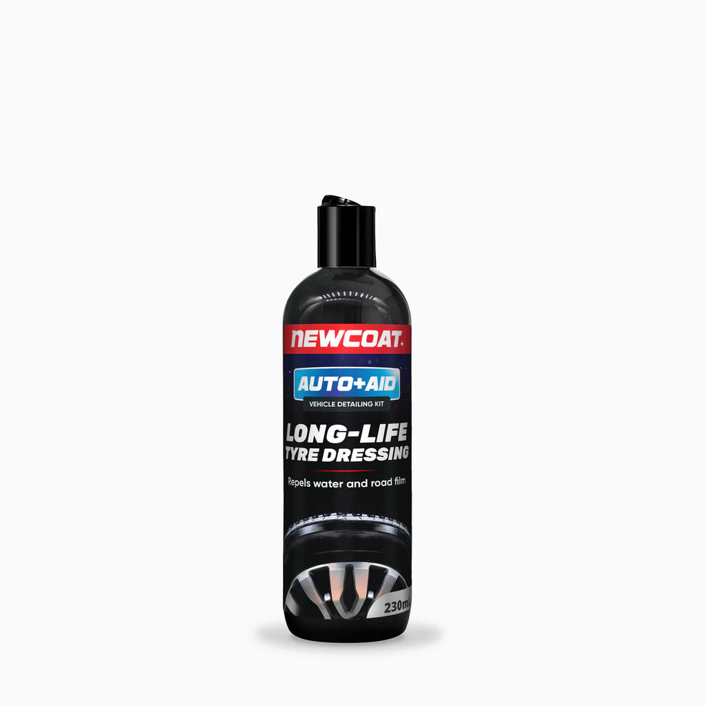 A single coat of Auto Aid Long-life Tyre Dressing gives the tyre a matte finish while applying multiple coats increases gloss and repellency.
