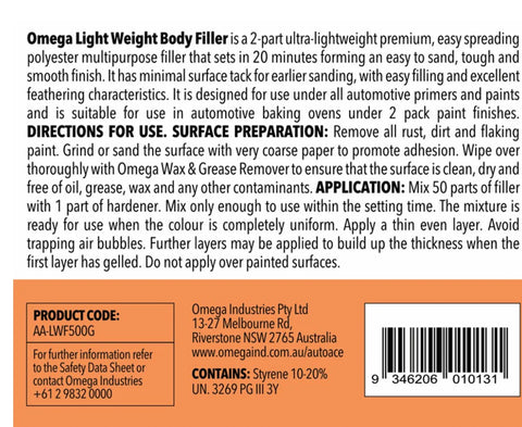 Omega Light Weight Body Filler 500g - AA-LWF500G