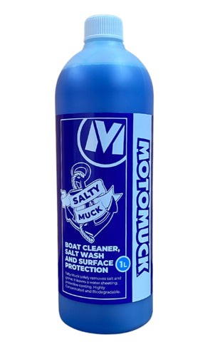 Safe to use on any surface including aluminium, fiberglass, steel, magnesium, chrome, plastic and rubber. Use Salty Muck during regular maintenance and washes to increase longevity and function for years to come.