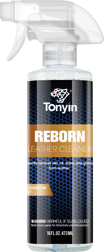 Tonyin Reborn Leather Cleaner -Reborn is a gentle cleaner that easily removes dirt, grease, body oils and light stains from natural leather, sealed leather and synthetic leather materials for an as new look.