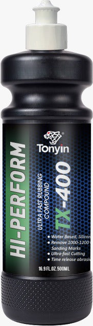 Tonyin Ultra Fast Rubbing Compound is a powerful polishing compound that is approved for scratch removal on newly cured paint and older paints. It is asilicone-free, low-dusting compound that removes sanding scratches, overspray, and swirls with minimal dusting. It is fast in removing sanding scratches, swirl marks, and overspray.