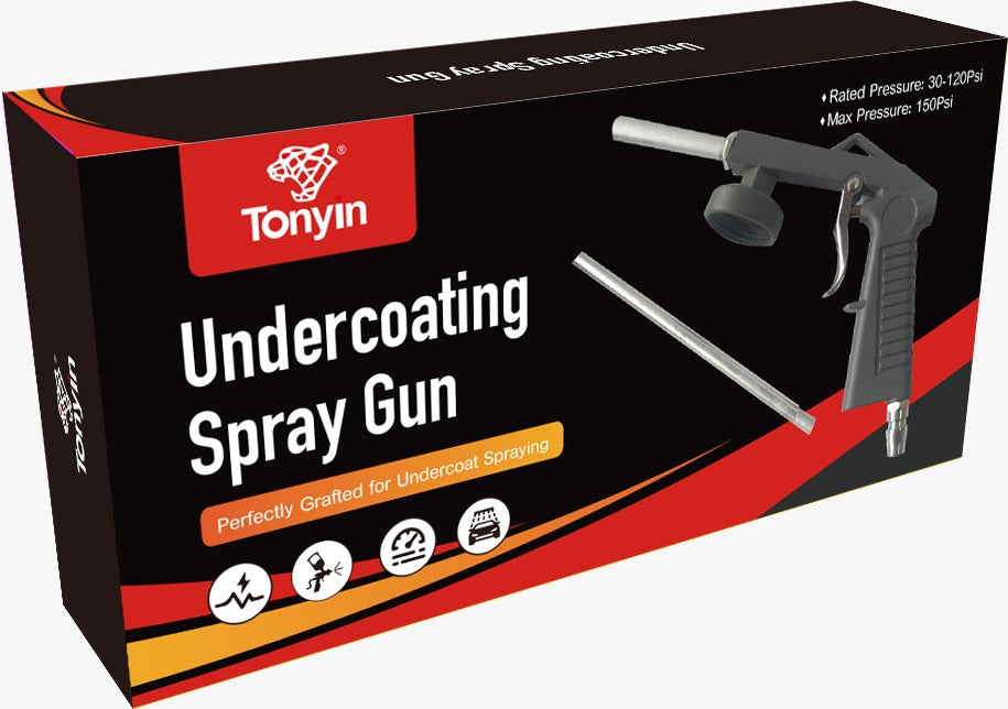 ● Durable pneumatic air application gun that's excellent for applying automotive rust proofing, rubberized undercoating, chip guard, truck bed liner and other general purpose coatings. Gun can be used with oil, solvent and water-based materials.